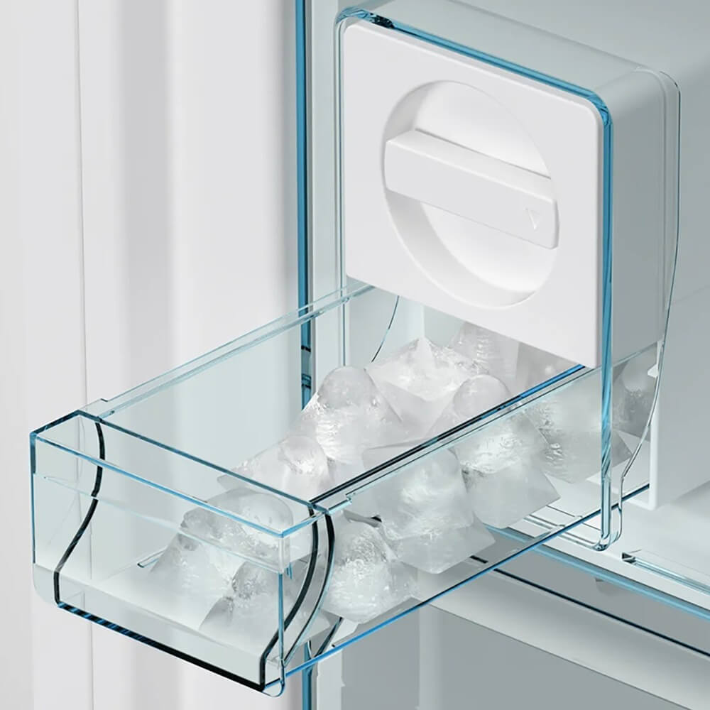 Главное преимущество — внушительный внутренний объем: общий полезный объем 619 л позволяет хранить полноценные недельные запасы и заранее готовить заготовки «про запас». В холодильной камере сохранять порядок помогают прочные стеклянные полки и выдвижные EasyAccess, а дверь вмещает до шести полок для соусов и напитков.
