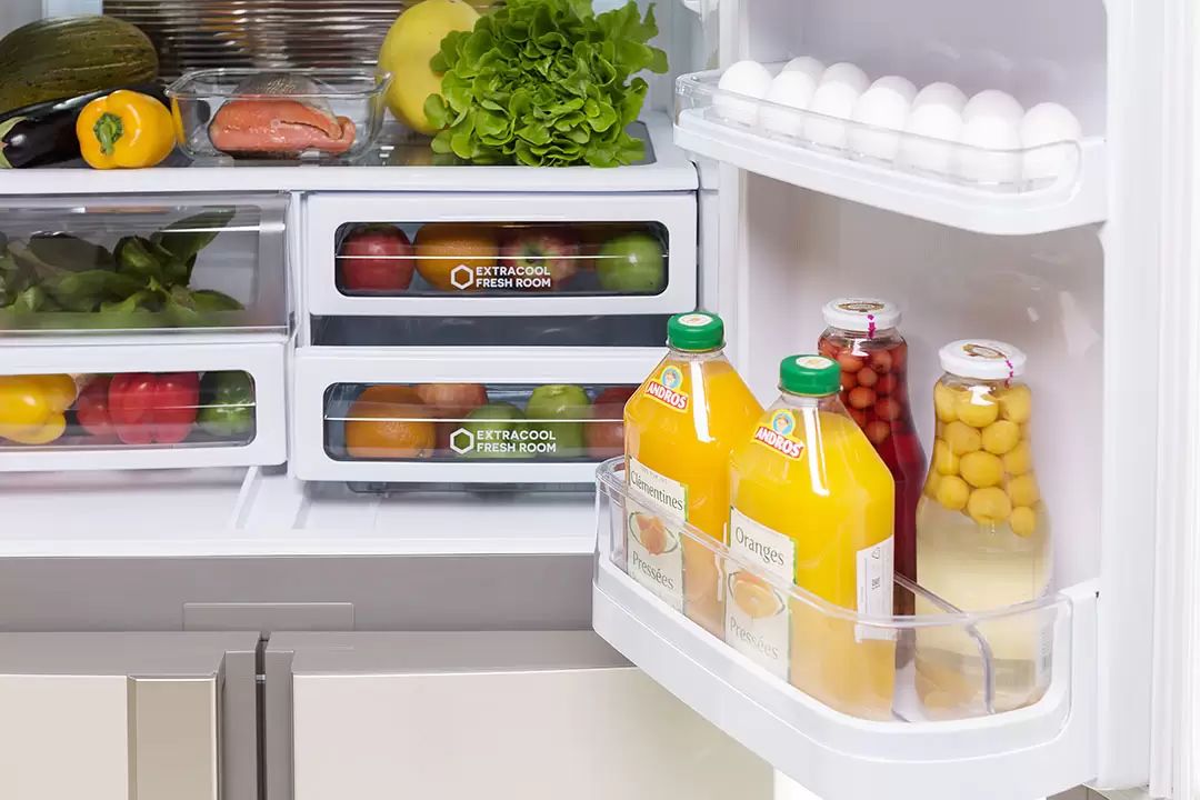 Данный холодильник оборудован уникальным инверторным компрессором JTECH invert, который имеет 36 ступеней интенсивности работы, что делает этот холодильник очень экономичным и невероятно тихим в работе. Так же благодаря новому компрессору холодильник имеет 2 новые уникальные технологии: - «Extra Cool» и «Express Freeze».