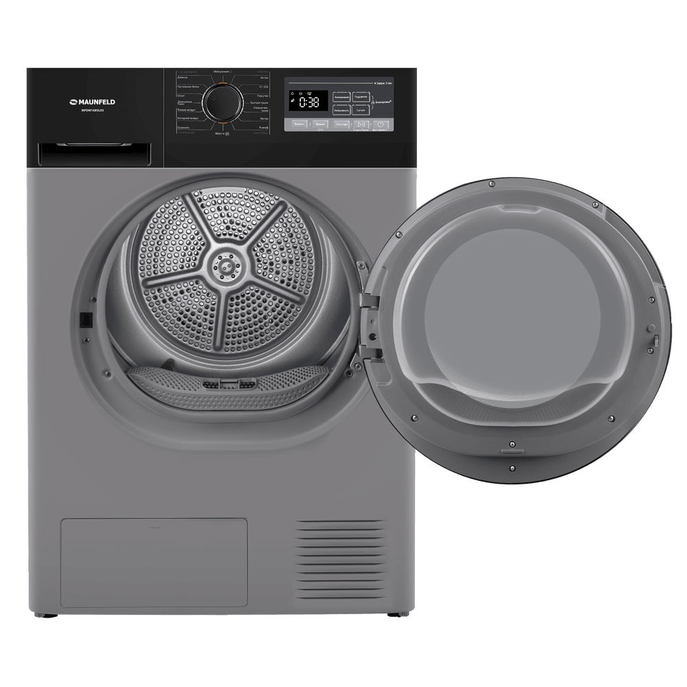 Сушильная машина с тепловым насосом обеспечивает бережную и экономичную сушку до 8 кг белья. Среди функций — датчик влажности, «Антисмятие», отложенный старт и подсветка барабана.