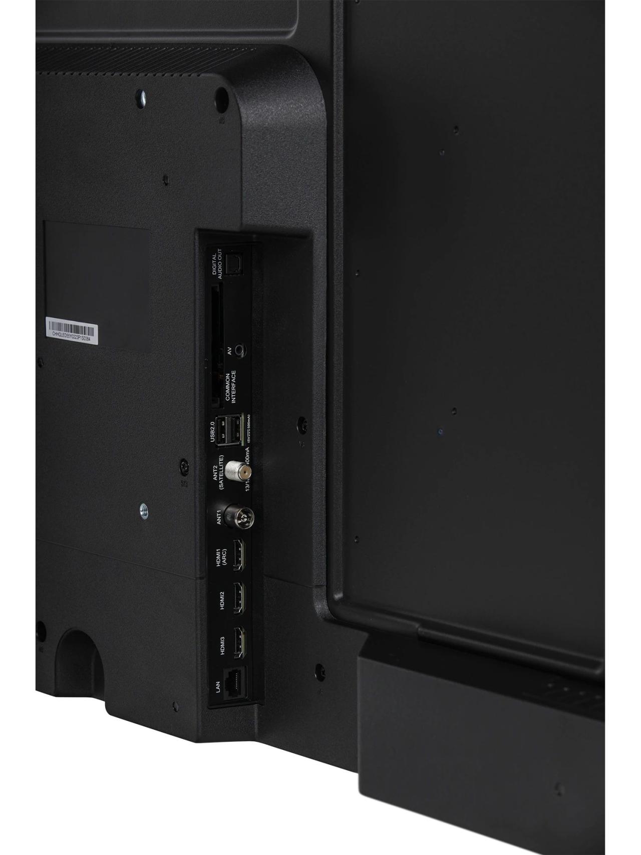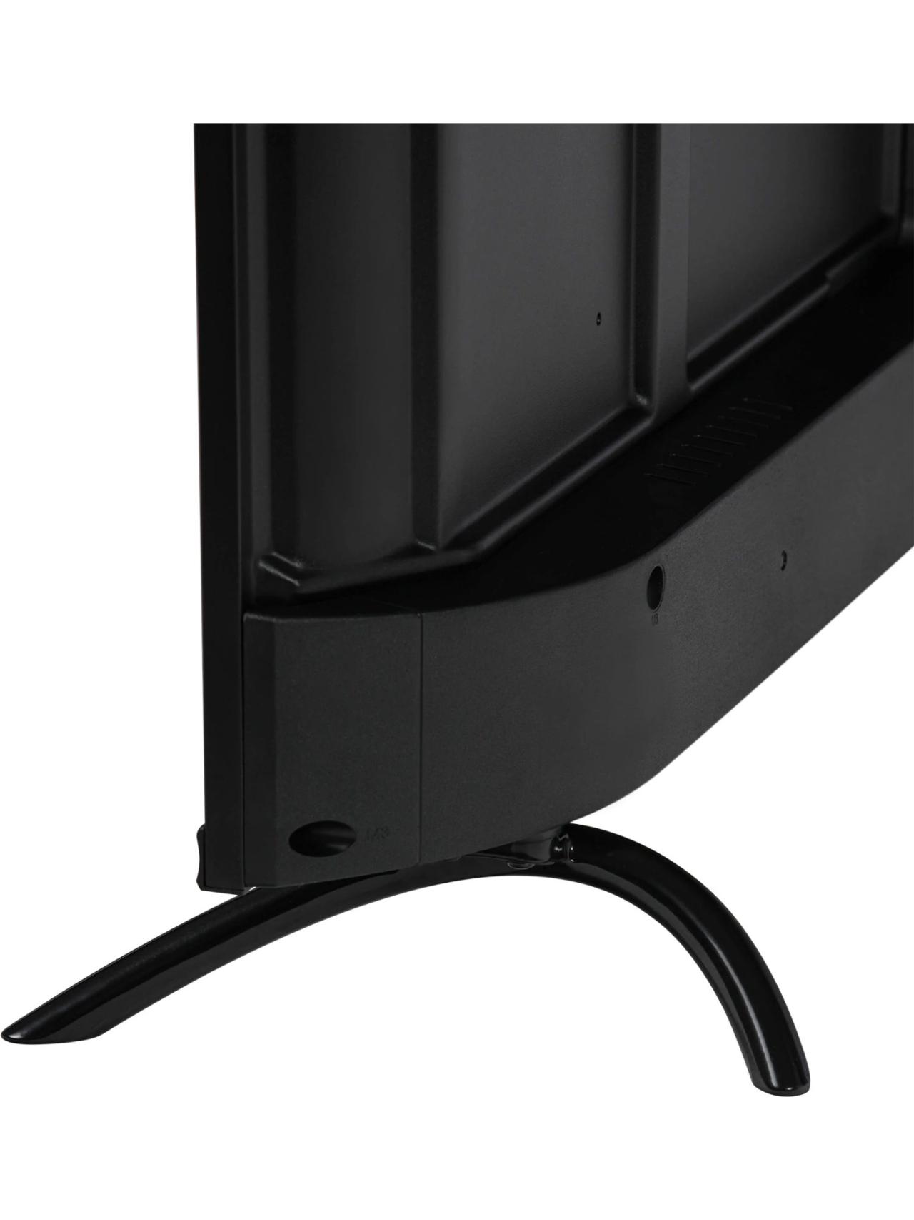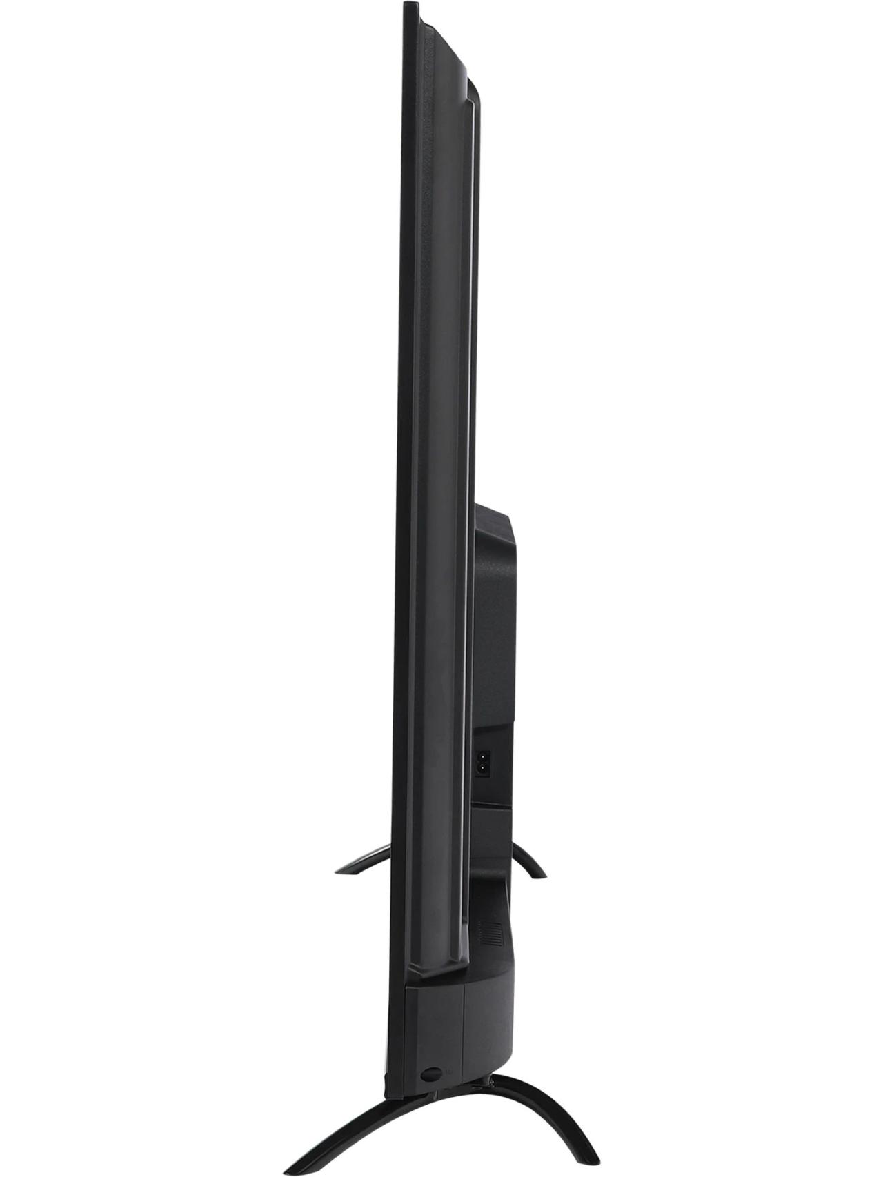 Телевизор выполнен в минималистичном безрамочном дизайне. Такое решение не отвлекает внимание пользователя от изображения на экране и погружает в безграничное удовольствие от просмотра. Нижняя рамка и ножки выполнены в стальном цвете.