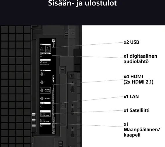 • Предустановленные приложения: Netflix, YouTube, Yle Areena, Ruutu, MTV, Viaplay, Spotify, CMore, Amazon Prime Video, Disney+, HBO Max и др.