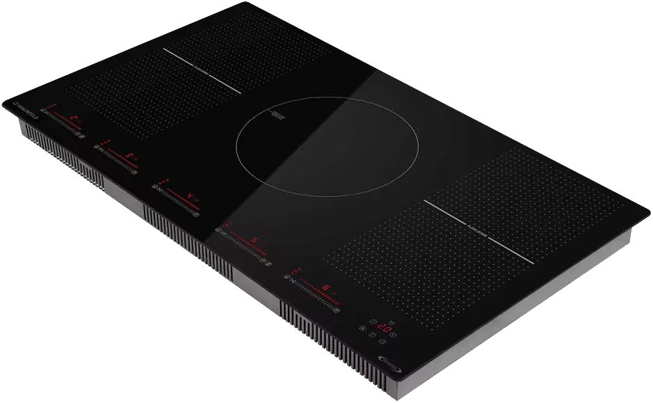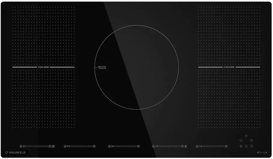 Flex Zone — представляет собой инновационную систему индукционных конфорок, которая обеспечивает полную свободу в использовании посуды любого размера, от турки до казана. Плита для нагрева задействует только ту поверхность, с которой соприкасается дно посуды и только там где вы ее поставили.